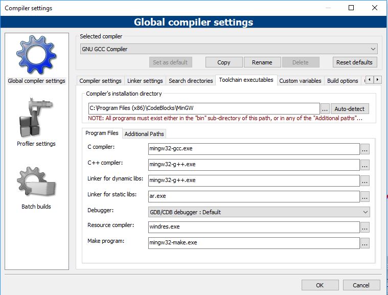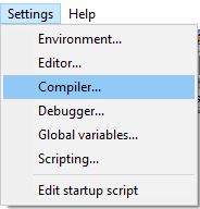 2- Verificar se o caminho para o MinGW está definido em Global compiler settings. Ver imagens abaixo