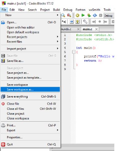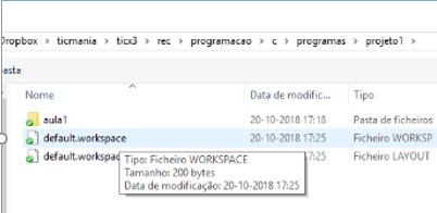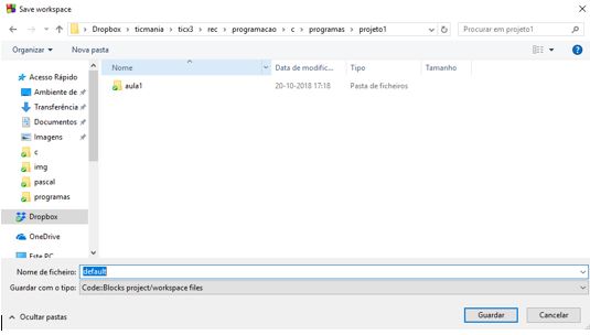 Guardar workspace as (Na mesma pasta onde foi criado o projeto ex: aula1) |
