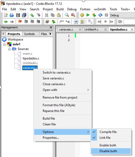 Escolher a SOURCE a compilar | Quando existem vários SOURCES é necessário desabilitar os que não queremos compilar |