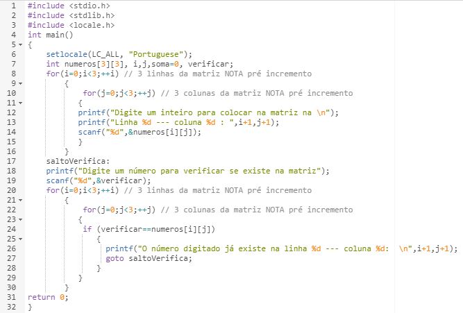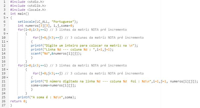 for(i=0;i<3;++i) // 3 linhas da matriz NOTA pré incremento