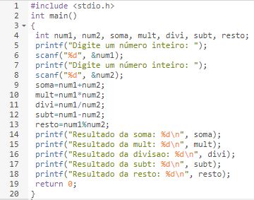 Desenvolve um programa que solicite ao utilizador 2 números inteiros. O programa deve realizar todas as operações (+, -, /, * e o resto da divisão)