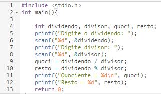 Desenvolve um programa que solicite ao utilizador 2 números inteiros. O programa deve mostrar o quociente e o resto da divisão. Utilize os operadores de atribuição.