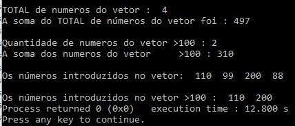 printf("\n\nQuantidade de numeros do vetor >100 : %d",ct100);